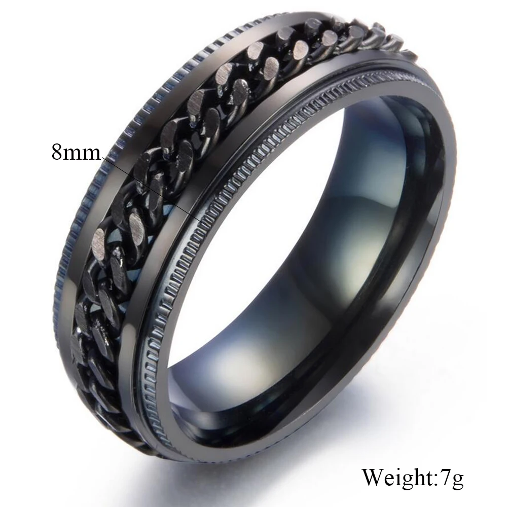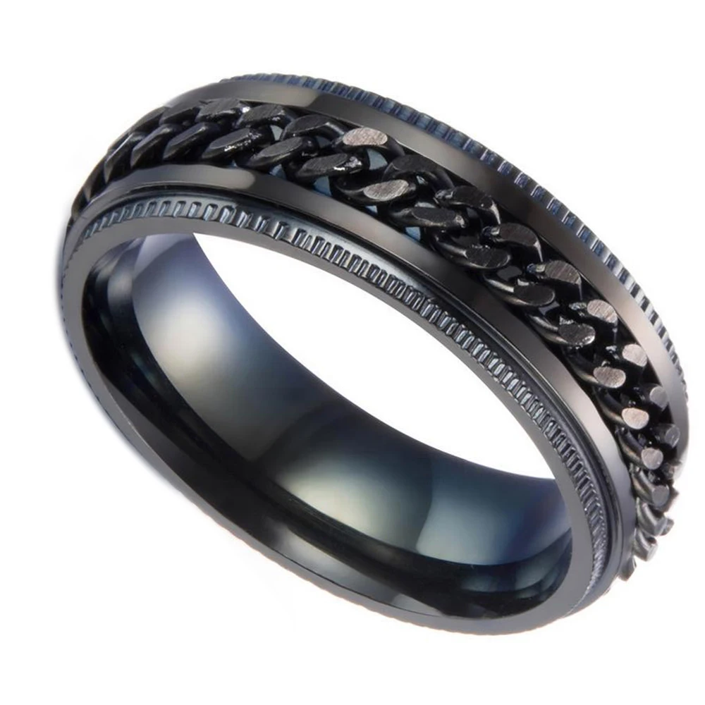 Rotation design Black rings Stainless Steel Chain Rings for Men Spinner Man Jewelry