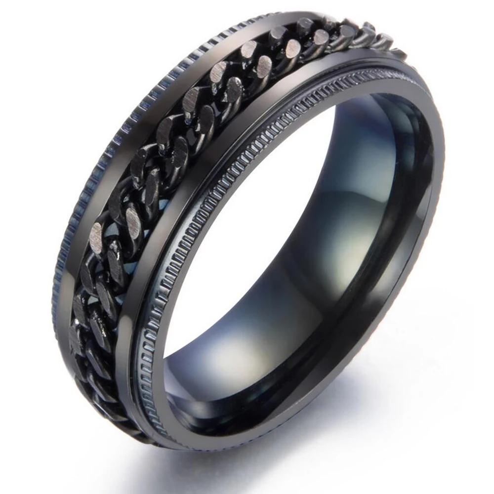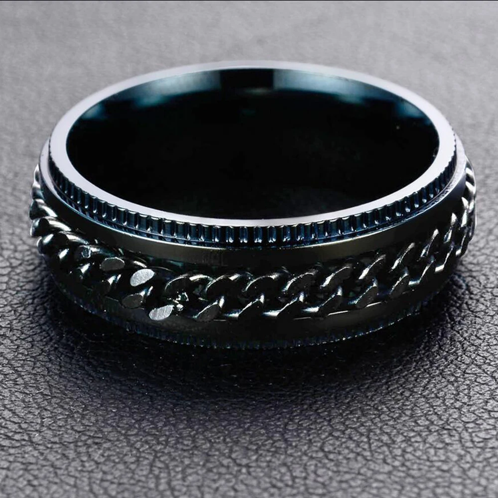 Rotation design Black rings Stainless Steel Chain Rings for Men Spinner Man Jewelry